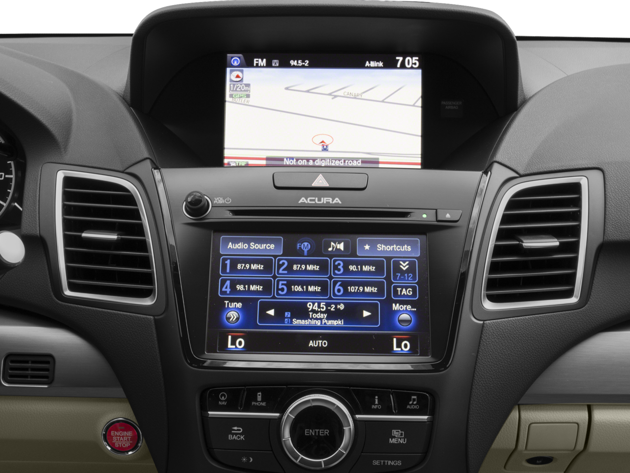 - Radio: Acura/ELS Studio Premium Audio System -inc: 10 speakers, Siri Eyes Free, SMS text message function, On Demand Multi-Use Display (ODMD), Bluetooth HandsFreeLink wireless telephone interface, Song By Voice, Aha compatibility, HD Radio, SiriusXM satellite radio, Pandora capability, USB audio interface w/iPod integration, Bluetooth streaming audio, MP3/auxiliary input jack, Speed-Sensitive Volume Compensation (SVC) and HomeLink