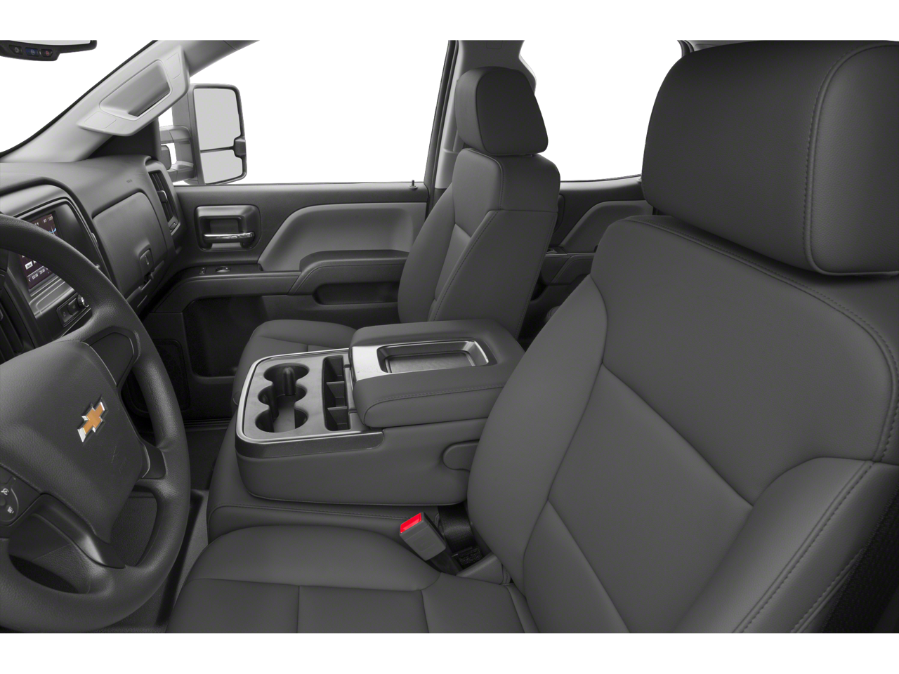 • Seats, front 40/20/40 split-bench, 3-passenger. Available in cloth or leather. Includes driver and front passenger recline with outboard head restraints and center fold-down armrest with storage. Also includes manually adjustable driver lumbar, lockable storage compartment in seat cushion, and storage pockets. (Leather with (KA1) heat is an available extra charge option with (H1Y) Jet Black leather appointed interior trim and requires (PCM) LT Convenience Package. Upgradeable to (A95) front bucket cloth seats on Crew Cab models.) (Leather with (KA1) heat is an available extra charge option with (H1Y) Jet Black leather appointed interior trim and requires (PCY) LT Fleet Convenience Package. Upgradeable to (A95) front bucket cloth seats on Crew Cab models.)