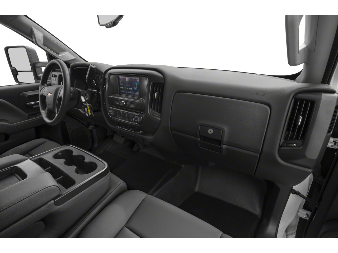 • Airbags, Double Cab: Single-stage frontal airbag for driver; Dual-stage front airbag for front outboard passenger; Seat-mounted side-impact airbags for driver and front outboard passenger; Head-curtain airbags for front and rear outboard seating positions; Includes front outboard Passenger Sensing System for frontal outboard passenger airbag (With (ZW9) pickup box delete on Double Cab and Regular Cab you will get the following: Single-stage frontal airbags for driver and front outboard passenger; Seat-mounted side-impact airbags for driver and front outboard passenger; Head-curtain airbags for front and rear outboard seating positions; Includes airbag deactivation switch for front outboard passenger airbag. Always use seat belts and child restraints. Children are safer when properly secured in a rear seat in the appropriate child restraint. See the Owner's Manual for more information. Regular Cab model does not have rear outboard seating positions.)