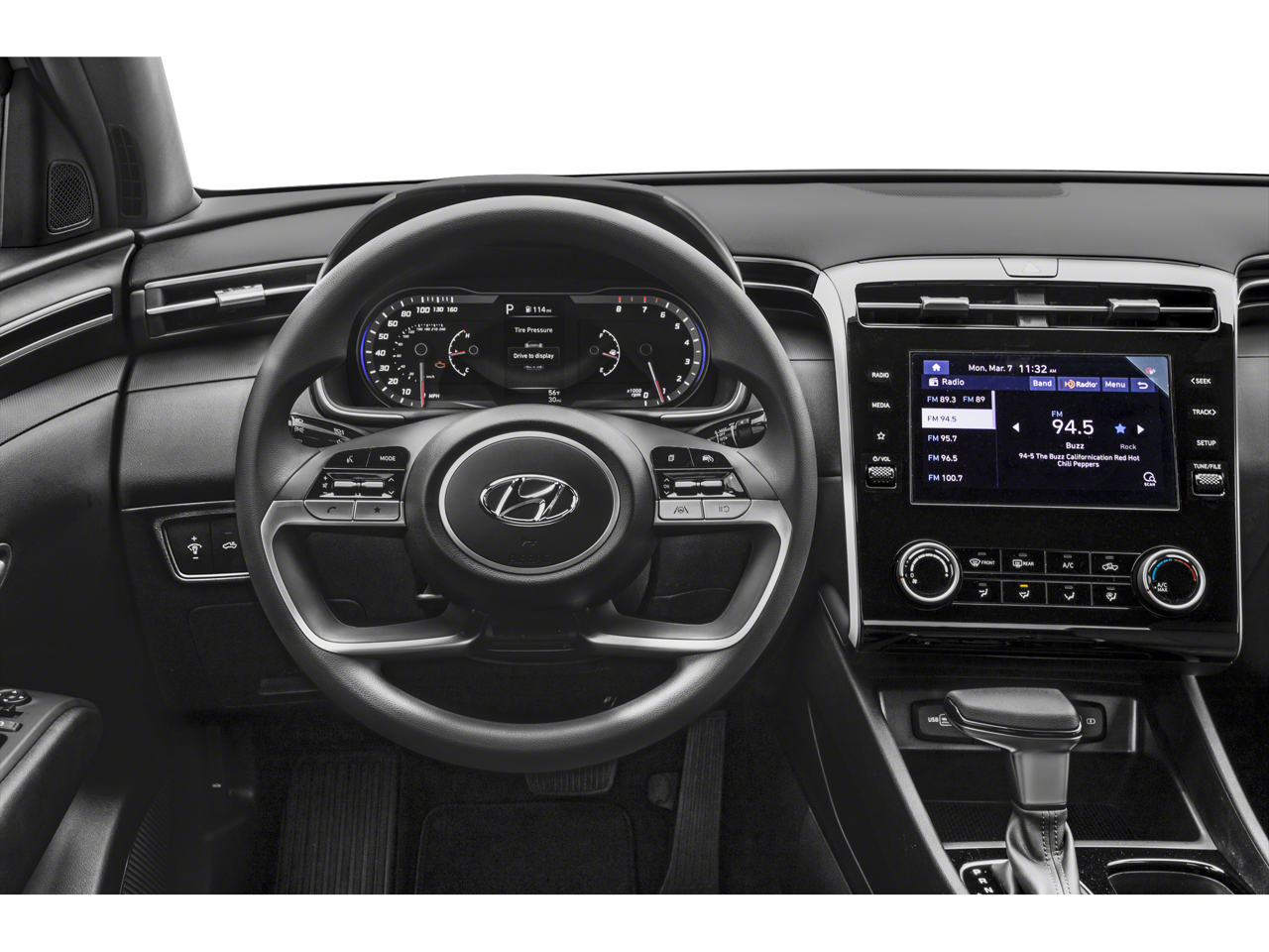 - Radio: AM/FM Audio System -inc: low-cost display audio, 8" color touchscreen, 6 speakers, SiriusXM satellite radio w/3-month trial subscription, HD Radio, Blue Link connected car system, Bluetooth, wireless Apple CarPlay and Android Auto and dual front high-power USB outlets